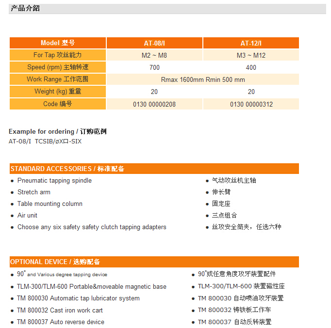 • 产品描述: 台湾整机原装TRADE MAX气动攻丝特点:
