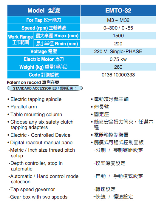 电动攻丝机EMTO(数控型)