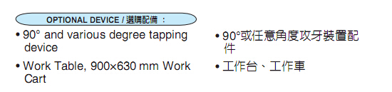 台湾整机原装TRADE MAX液压攻丝特点: